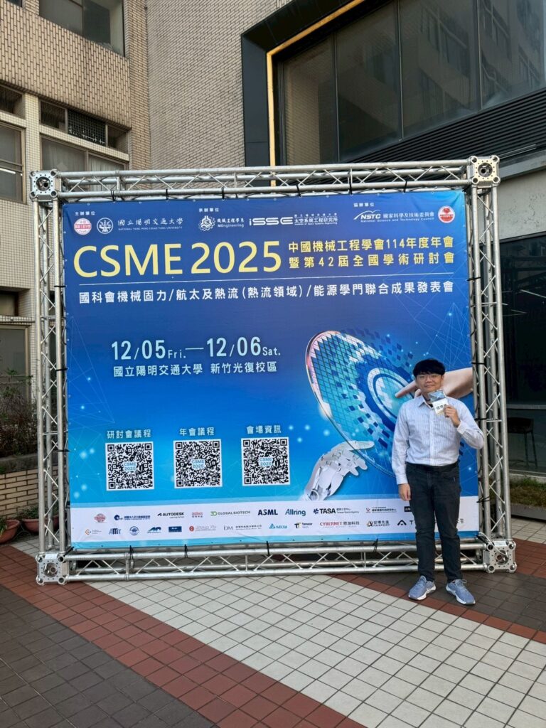 張博維參加國立陽明交通大學機械系所舉辦之CSME 2025 研討會,並進行口頭報告。