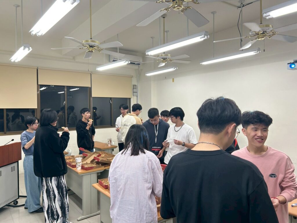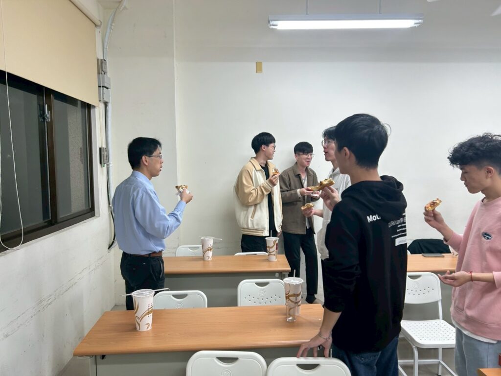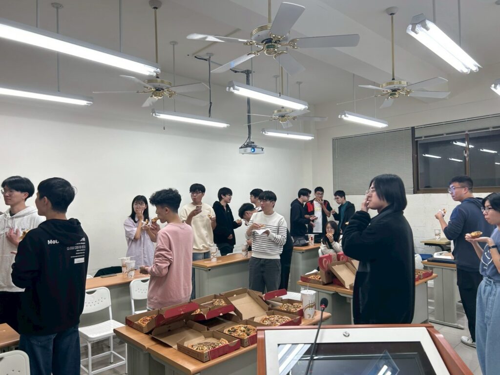 老師慰勞SEM助教與軟電實驗室成員,謝謝各位這學期的幫忙,請大家吃pizza。